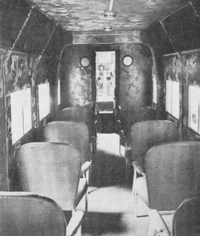 El piloto y el copiloto se sentaban uno junto al otro, con doble control, en una cabina cerrada justo por delante del borde de ataque, con ventanas a ambos lados del fuselaje para visión lateral y descendente. El acceso a la amplia cabina de pasajeros, de 4,60 m de largo, se realizaba a través de un compartimento de radio. La cabina tenía capacidad para diez pasajeros, cinco a cada lado con su propia ventana. En la parte trasera se encontraban los espacios para equipaje y los baños. Los pasajeros entraban por una puerta a babor y el equipaje se cargaba por una puerta al otro lado.