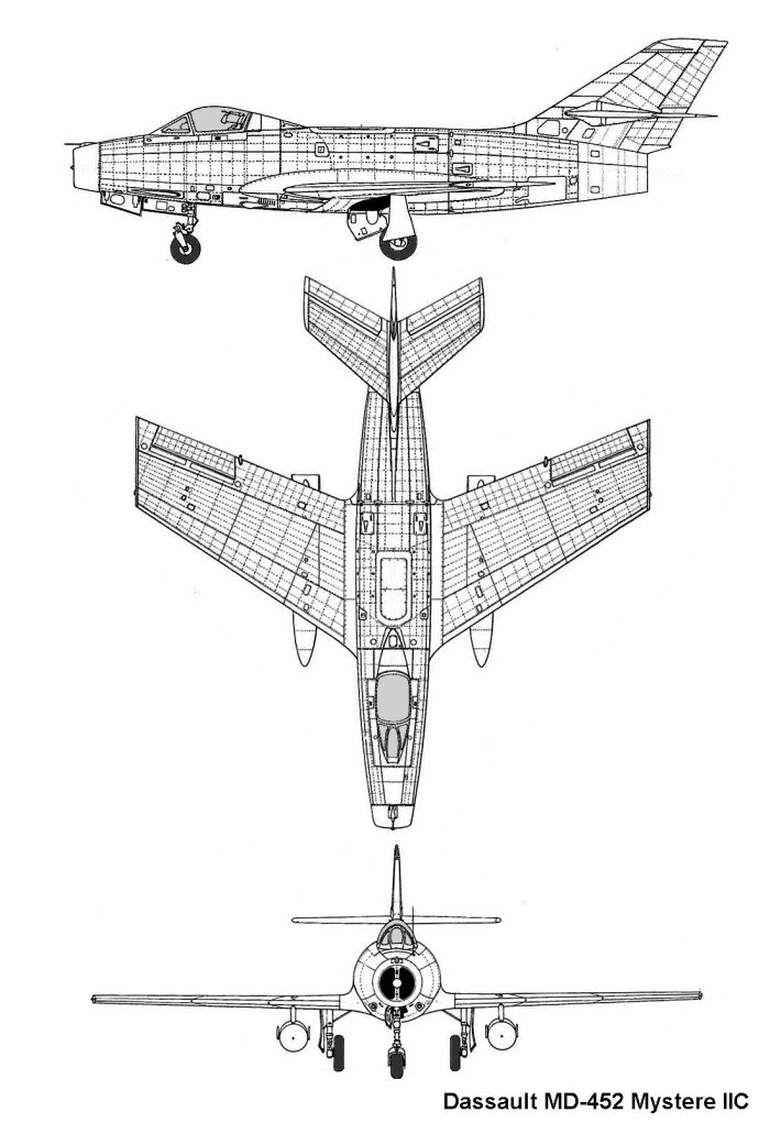 Estos tres prototipos Mystère I dieron lugar a dos prototipos Mystère IIA, propulsados por el Tay y armados con cuatro cañones Hispano de 20 mm; y luego a cuatro prototipos Mystère IIB, que cambiaron los cuatro cañones de 20 mm por dos cañones tipo revólver DEFA de 30 mm.