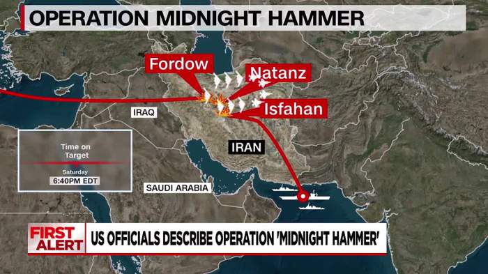 La Operación Midnight Hammer, movilizó más de 125 aeronaves, incluyendo siete bombarderos furtivos B-2, que se infiltraban en Irán, mientras que otros B-2 fueron enviados a Guam como señuelos. El ataque fue una sorpresa, ya que el presidente de Estados Unidos, Donald Trump, declaró, apenas dos días antes, que tardaría dos semanas antes de decidir si atacaría Irán. Sin embargo, la operación no fue el resultado de una decisión de último minuto, sino la culminación de quince años de planificación, recopilación de inteligencia, desarrollo de armas y entrenamiento.