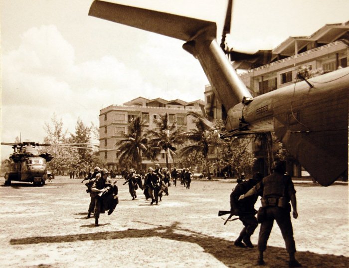El 12 de abril de 1975 comenzó la Operación Eagle Pull, que consistió en la evacuación de ciudadanos norteamericanos y camboyanos de Phnom Penh antes de la ciudad cayese en manos de los Jemeres Rojos. La operación fue un éxito, y preludio de la que solo 17 días más tarde se desarrollaría en Saigón, mucho más importante. En total, ese día se evacuó a 590 personas, de las que 146 eran americanos.