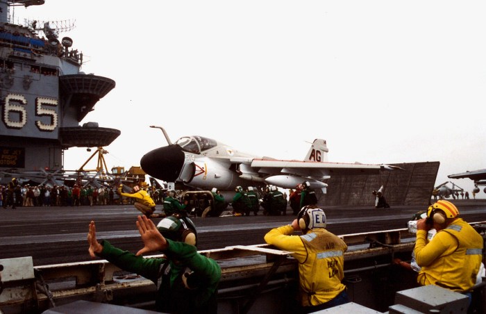 Participó en operaciones contra Irán en 1988, hundiendo una fragata y dañando otra. Posteriormente en junio de 1996, el Enterprise impuso zonas de exclusión aérea en Bosnia como parte de la Operación Joint Endeavor y sobre Irak como parte de la Operación Southern Watch. El despliegue finalizó en diciembre de 1996, lo que también marcó el fin del servicio activo del Grumman A-6 Intruder de la Armada.