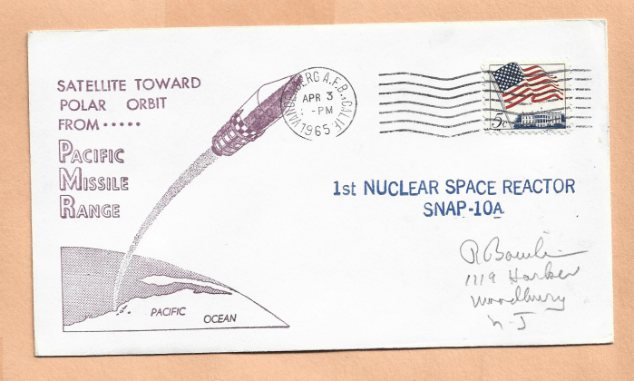 El SNAP-10A (Systems for Nuclear Auxiliary Power, alias Snapshot for Space Nuclear Auxiliary Power Shot, también conocido como OPS 4682) fue lanzado desde la Base Aérea de Vandenberg por un cohete ATLAS Agena D SLV-3, el 3 de abril de 1965 a una órbita terrestre baja de unos 1.300 km de altitud, en una órbita polar ligeramente retrógrada, lo que garantizó que las etapas gastadas del cohete terminasen en el océano.