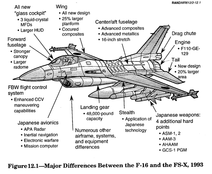 Mitsubishi utilizó el diseño existente del F-16 como guía de referencia para su trabajo de diseño, y más del 95% de los planos de ingeniería del F-16 se modificaron para el F-2.