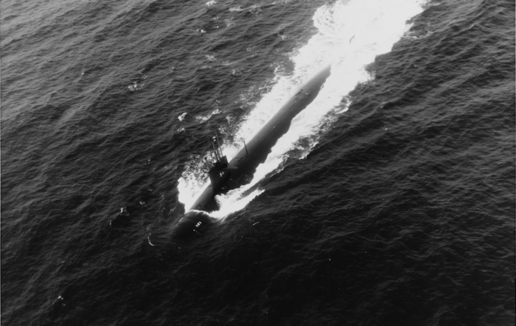 El crucero USS Belknap, cuartel general de la delegación norteamericana.