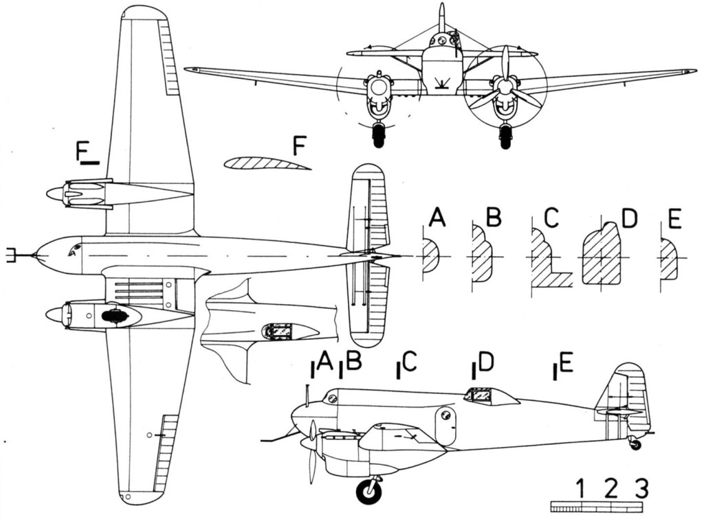 El avión se fabricó en madera, con tubos metálicos en la parte central. El empenaje horizontal, de 8 metros de longitud soportaba 4 timones verticales. La disposición de los fuselajes permitía acceder directamente al avión. Los motores eran dos Hispano Suiza 12 Hbr, de 500 cv, refrigerados por un único radiador frontal. La autonomía debía ser de 1.000 kilómetros, y alcanzar una altura de 4.500 metros.